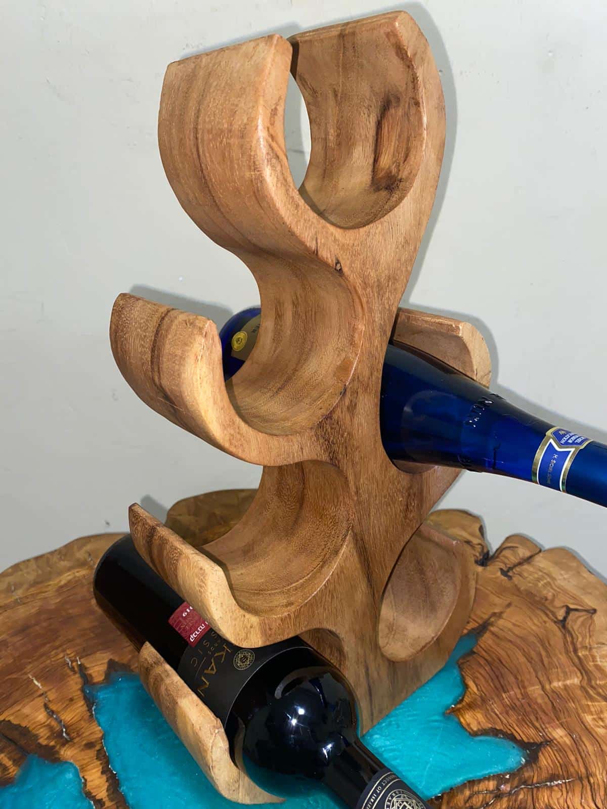 שולחן קפה בעבודת יד שורש עץ זית עתיק בשילוב אפוקסי