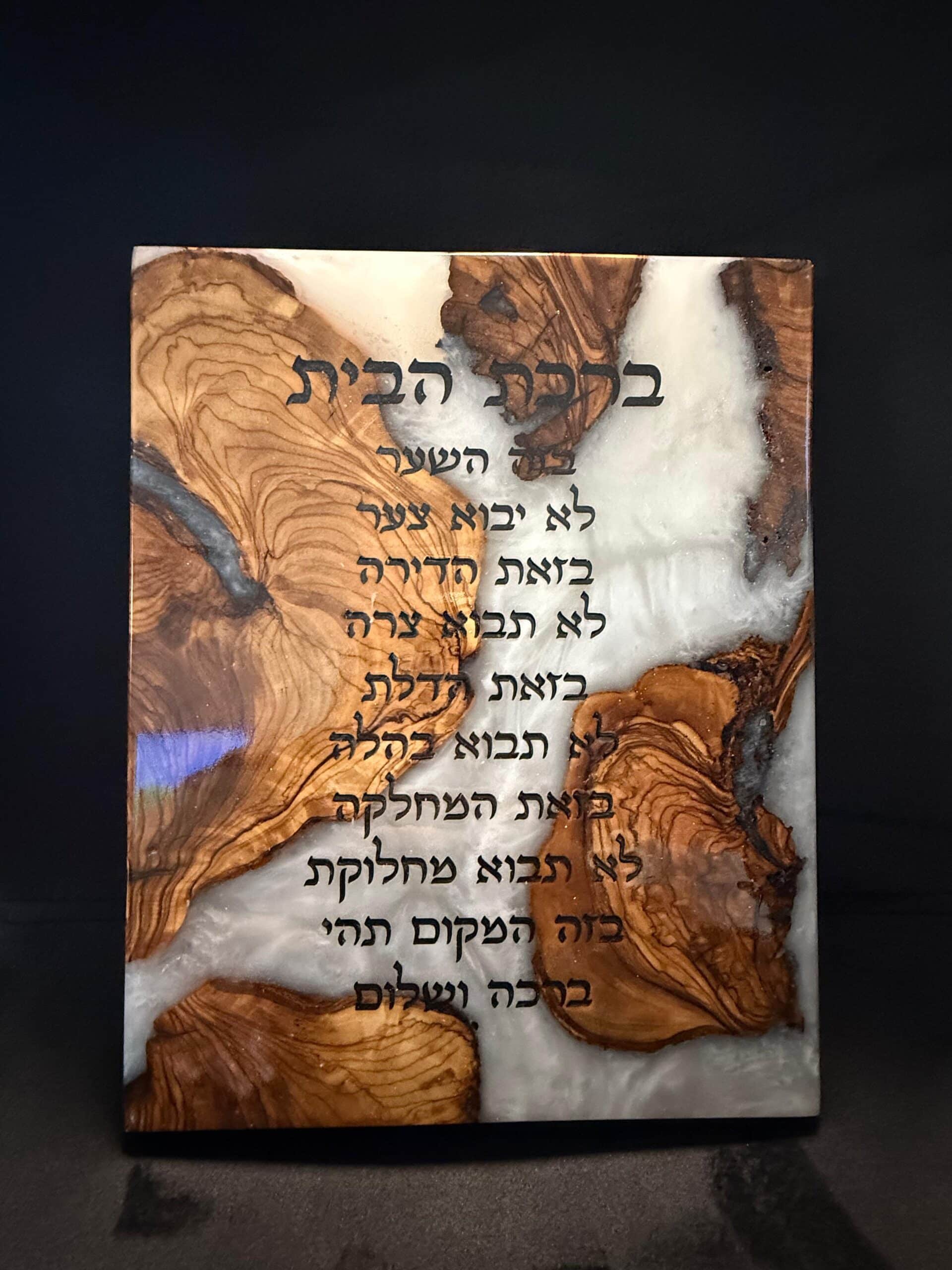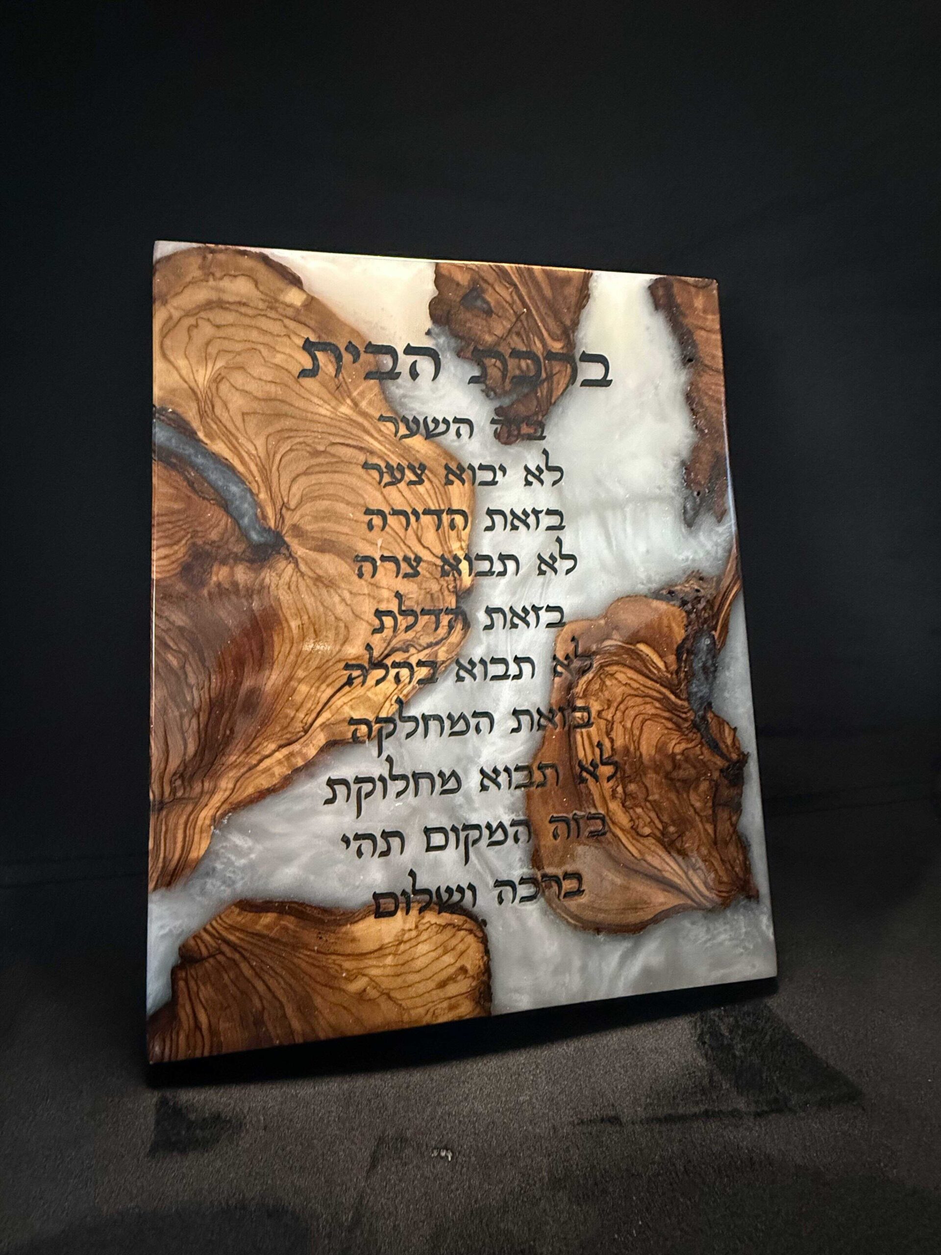 ברכת הבית בשילוב עץ זית עם אפוקסי לבן